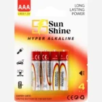 باتری‌های نیم قلمی هایپر آلکالاین سان شاین با بسته‌بندی 4 عددی، با ولتاژ ۱٫۵ ولت و تکنولوژی  Alkaline، برای دستگاه‌های پرمصرف مانند اسباب‌بازی‌ها، ریموت‌کنترل‌ها و ساعت‌ها مناسب هستند. این باتری‌ها نسبت به مدل‌های Super Heavy Duty تا ۹ برابر ظرفیت بیشتری دارند و در برابر نشتی و سولفاته شدن مقاوم بوده و فاقد جیوه و کادمیوم هستند.